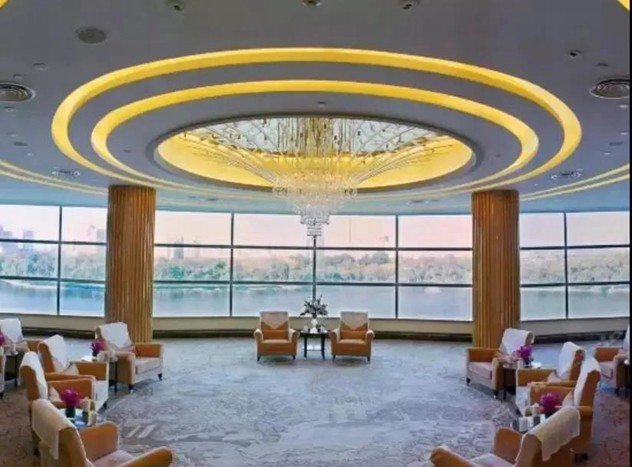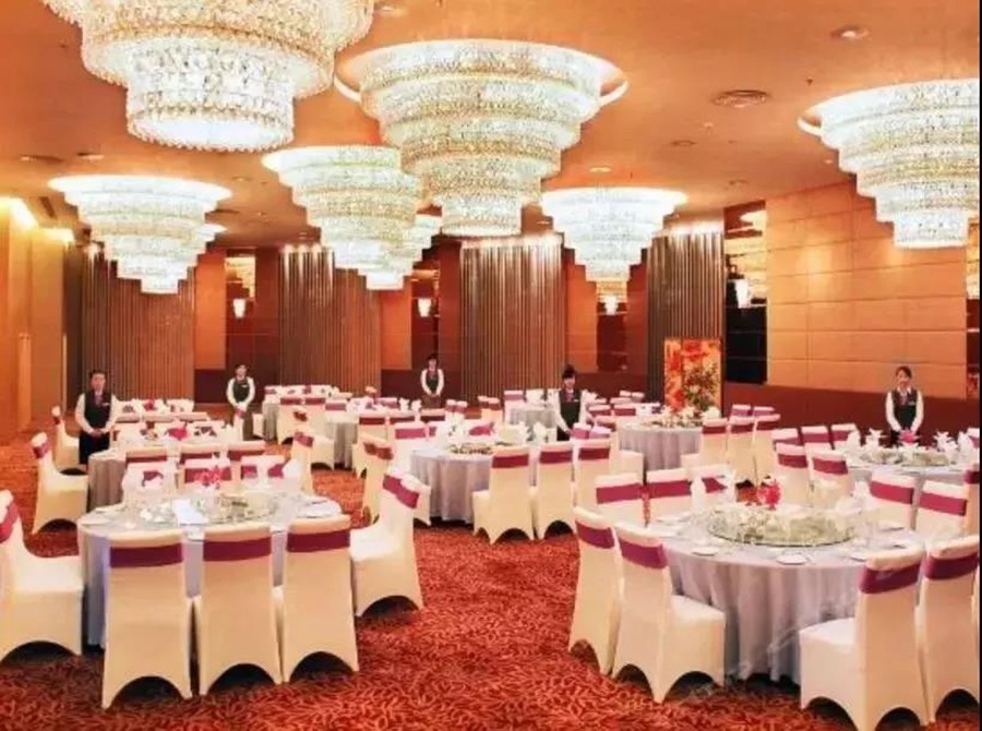 多功能宴会厅通体无遮挡,大气奢华,可同时容纳260人,是举行大型宴会、会议的理想场所;位于饭店三楼的VIP贵宾厅占地500平方米,临湖景致,可容纳100人,是媒体见面会及小型商务洽谈的不二选择;商务会议活动也可选择在近400平方米临湖落地窗的叙乡阁中餐厅举行。